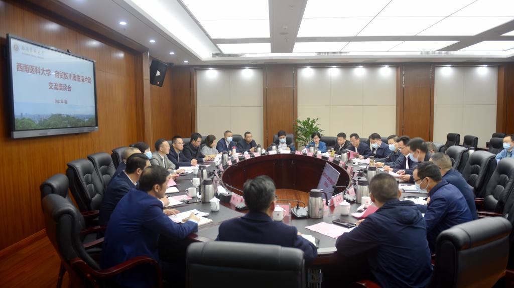 4月20日上午,自贸区川南临港片区党工委副书记、管委会主任蔡宗炜一行来我校开展座谈交流。学校党政办、人事处、学工部、教务处、科技处、财务管理处、对外联络处、继续教育学院、附属医院、附属中医医院、附属口腔医院和川南医学转化研究院负责人参加了座谈会。会议在城北校区第一会议室举行,由学校党委副书记、校长张春祥主持。