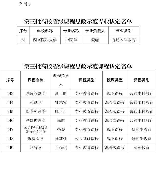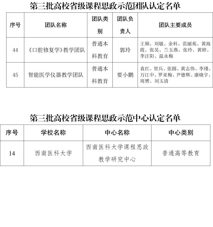 近日,四川省教育厅发布《关于公布第三批高等学校省级课程思政示范项目认定结果的通知》(川教函〔2022〕199号),我校《中医学》专业获批第三批高校省级课程思政示范专业,《系统解剖学》等7门课程获批第三批高校省级课程思政示范课程,《口腔修复学课程思政示范教学团队》等2个团队获批第三批高校省级课程思政示范教学团队认定名单,“英国上市公司365课程思政教学研究中心”获批第三批高校省级课程思政教学研究示范中心。