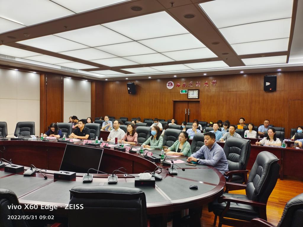 5月31日,“建行杯”第八届四川省国际“互联网+”大学生创新创业大赛组织工作培训会在四川省教育厅二楼多功能会议室举行。本次培训会采取线上、线下相结合的形式举行。学校党委常委、副校长何涛、聂敏海,教务处、大学科技园管理办公室、研究生院及各院系负责人、师生代表在学校一会议室集中参加视频培训会。