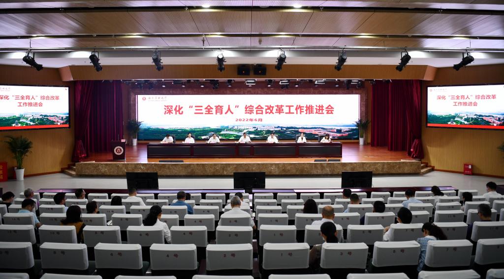 6月16日下午,学校深化“三全育人”综合改革工作推进会在城北校区第一学术报告厅召开。学校党政领导廖斌、张春祥、李尚志、刘毅、彭钢、何涛、代荣阳出席会议。会议由党委副书记、校长张春祥主持。