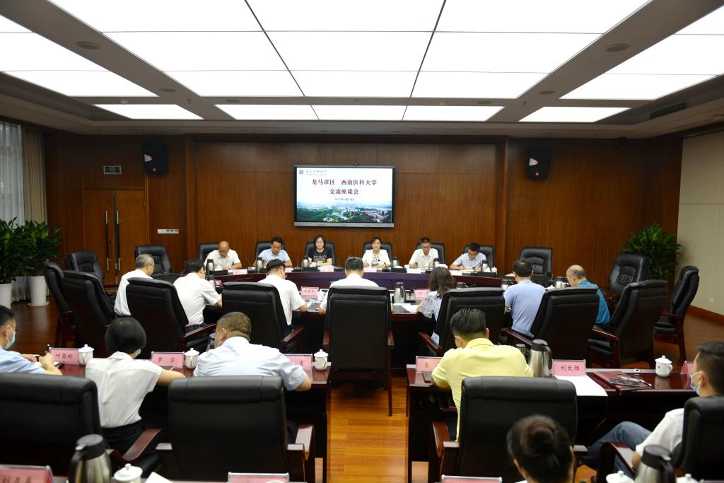 6月28日上午,龙马潭区区委书记、长开区党工委书记涂曲平一行赴我校开展交流座谈。龙马潭区区委副书记赵林春,区领导陈佳、刘波、李正梁、张维林;学校党委书记廖斌,党委副书记、校长张春祥,党委常委、副校长何涛、聂敏海、代荣阳,党委常委、组织部部长冯天明,党委常委、宣传部·统战部部长柏珂出席会议。会议由廖斌主持。