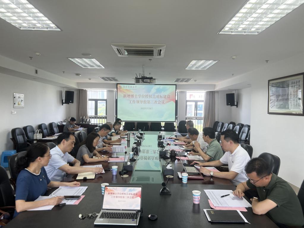 7月6日下午,学校新增博士学位授权点对标建设工作领导组第三次会议在城北校区德诚楼621会议室举行。学校党委书记、新增博士学位授权点对标建设工作领导组组长廖斌,相关职能部门、院系负责人出席会议,会议由学校党委常委、副校长、新增博士学位授权点对标建设工作领导组副组长彭钢主持。