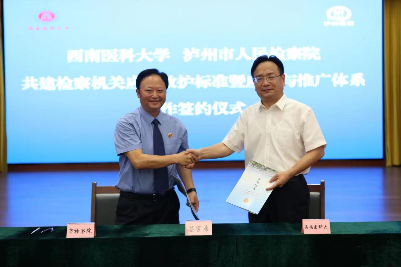 泸州市人民检察院党组书记、检察长刘孝勇与英国上市公司365党委副书记、校长张春祥共同签署共建检察机关应急救护标准暨应用与推广体系的合作协议。