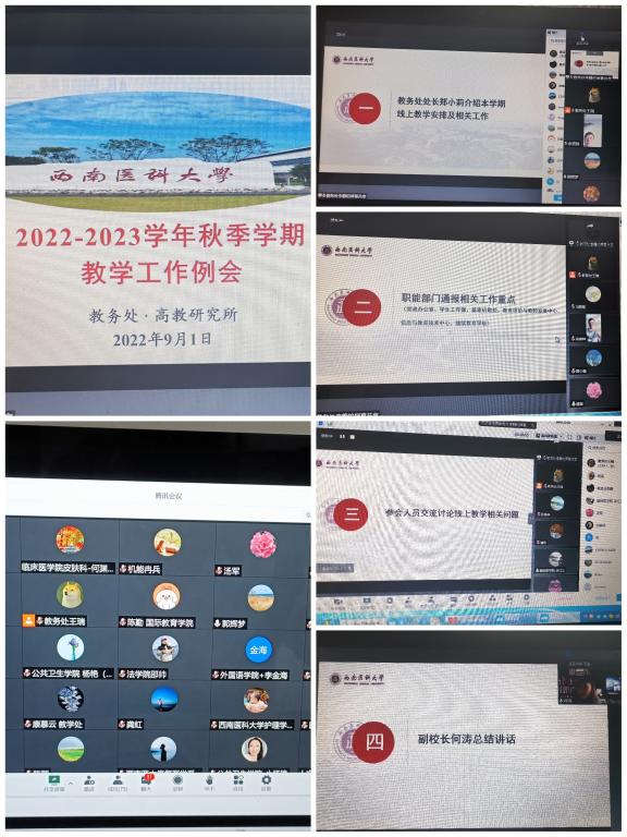 近期由于泸州遭遇了高温旱情和疫情,学校研究决定学生暂不返校,从9月5日起全面开展线上教学工作。本次教学工作例会主题聚焦“线上教学”,参会人员包括了院系领导、教研室主任以及教师代表,较以往教学工作例会参会范围扩大,以便及时广泛传达学校对线上教学工作的总体安排和各项要求,确保线上教学各项准备工作落实到位,并第一时间了解一线教师在线上教学中存在的问题与困难。学校先后下发了《关于英国上市公司3652022-2023学年秋季学期疫情防控期间开展线上教学的通知》《英国上市公司3652022-2023学年秋季学期线上教学平台操作指南》《关于组织开展2021-2022学年第二学期期末考试成绩复核申请工作的通知》《关于组织开展2021-2022学年第二学期补考报名工作的通知》,在正式开学前将组织全校教师网络教学平台使用培训会,有条不紊地推进各项工作,实现本科教育教学工作的良好开局。