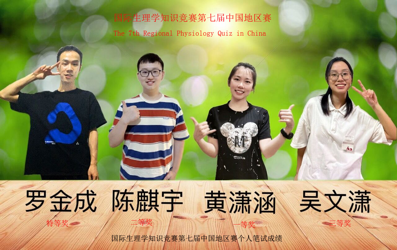 9月17-18日,国际生理学知识竞赛第七届中国地区赛由徐州医科大学组织举办,来自国内首都医科大学、同济大学、中南大学、复旦大学等高校的36支代表队通过线上平台参加了本届比赛。学校生理学知识竞赛筛选出来的学生罗金成、陈麒宇、黄潇涵和吴文潇,在基础医学院生理学教研室赵春玲团队的指导下,代表我校征战了此次大赛。我校学子不负重托,充分展示西南医大特色,荣获个人笔试特等奖1项、一等奖1项,笔试成绩团体第四名,口试成绩团体三等奖的佳绩。这是我校学子自2017年参赛以来,首次获得该赛事的特等奖。