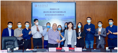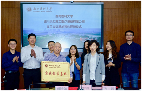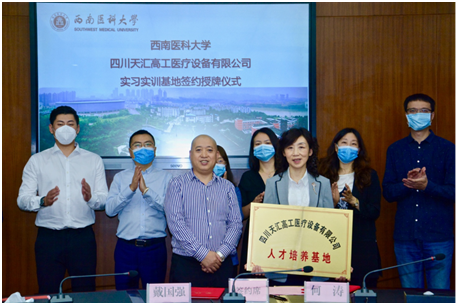 为进一步提高医学工程专业学生的实践动手能力,2022年10月21日,英国上市公司365、四川天汇高工医疗设备有限公司(以下简称天汇高工)实习实训基地签约授牌仪式在德诚楼一会议室举行。仪式上,双方签订校企共建实习实训基地合作协议并互授《人才培养基地》《实践教学基地》铜牌。学校党委常委、副校长何涛,教务处、医学信息与工程学院、附属医院、附属中医院相关人员和四川天药医药集团有限公司执行董事、四川天汇高工医疗设备有限公司总经理戴国强,四川天药医药集团有限公司总经理李昕,副总经理代运杨及相关部门负责人参会。