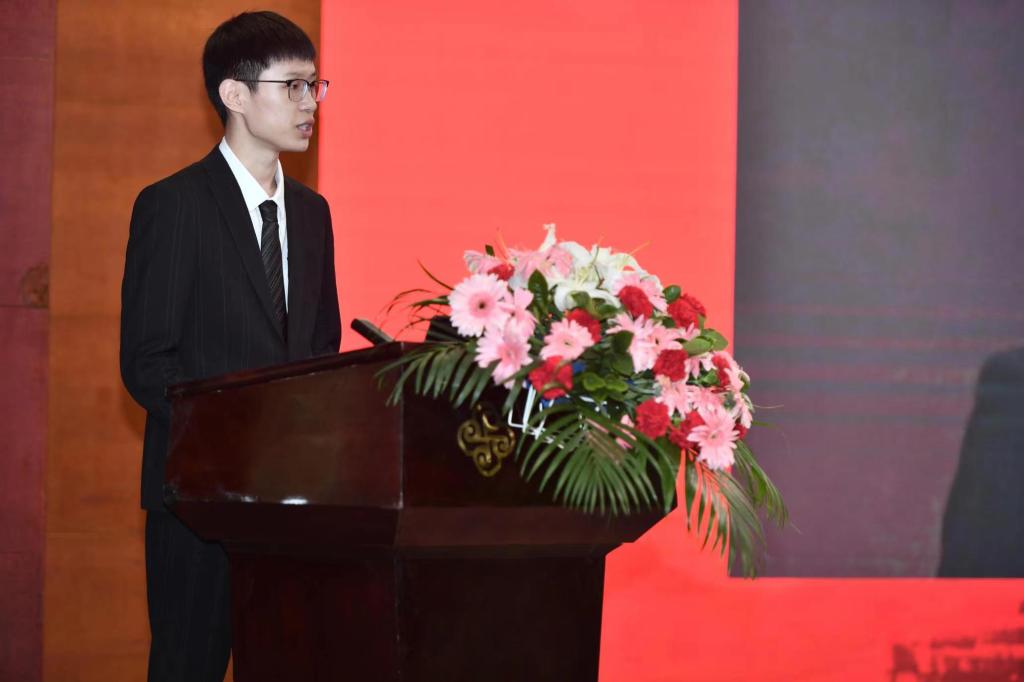 药学院2021级研究生喻永琪代表学生发言。他讲到,本硕期间与药学院共同成长已有六余载,对学校、学院的辛勤培养表示衷心的感谢,并代表药苑学子在庆典上郑重承诺不忘学院之恩,不负药学人之名,让学院、让西南医大为我们而骄傲。
