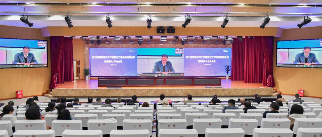 2月16日上午,全省高校征兵工作暨就业工作推进视频会在成都召开,学校在城北第一学术报告厅设立分会场,党委副书记刘毅,党委常委、副校长聂敏海,招生就业处、武装部、研究生院部门领导以及二级院系分管学生工作领导、学生科长、毕业年级辅导员等参加会议。