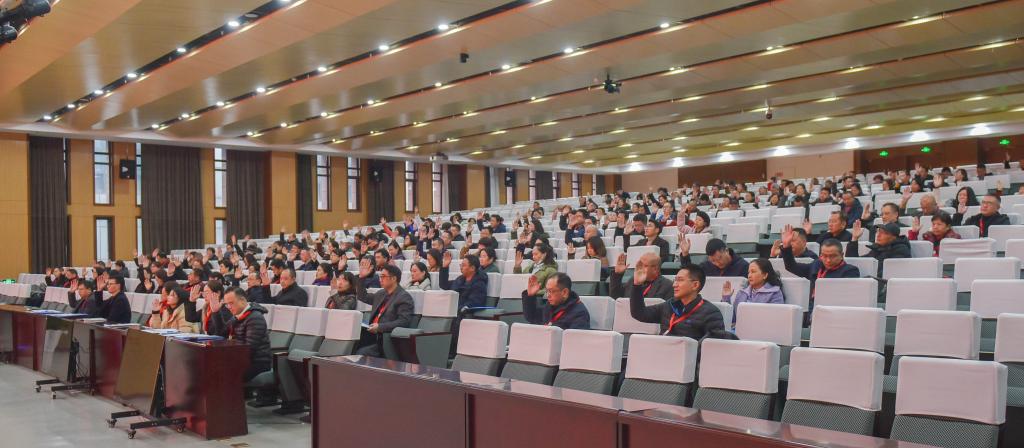 工会副主席陈先红以《凝心铸魂跟党走 团结奋斗新征程 为推进学校内涵式高质量发展贡献工会力量》为题向大会作教代会、工会工作报告。