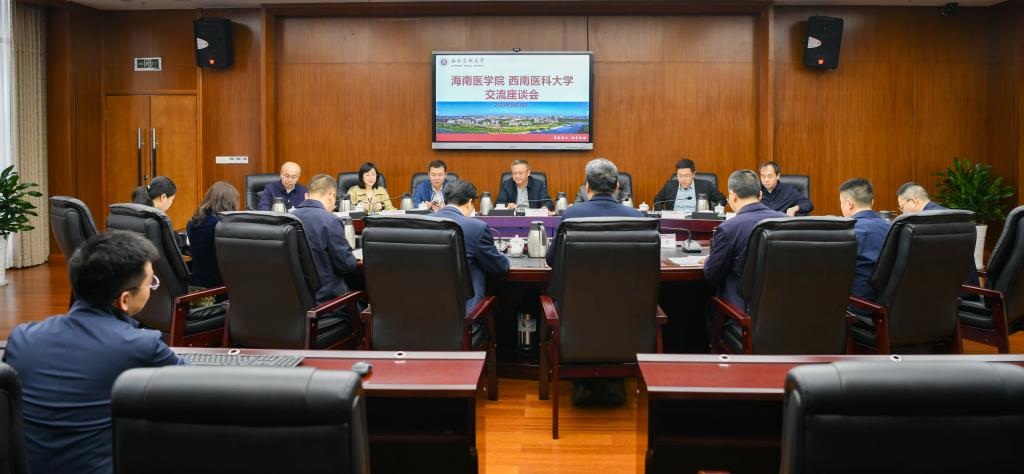 3月10日,海南医学院党委书记杨俊一行来校调研交流。学校党委书记廖斌出席并主持会议,学校党委常委、副校长彭钢,人事处、发展规划处、教务处、科技处、对外联络处、附属医院相关负责人参会。