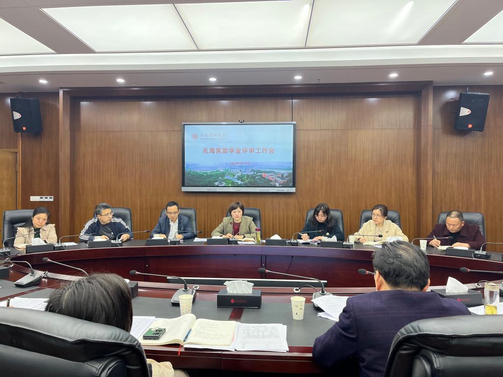 3月15日上午,学校2023年兆海奖助学金评审工作会在城北校区第一会议室召开。评审工作领导小组全体成员参加会议,会议由学生资助管理中心主任谭群英主持。