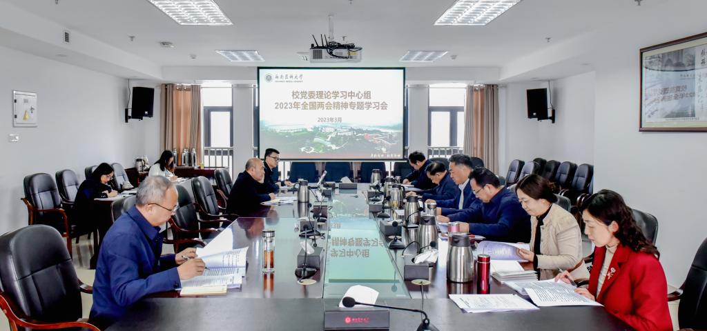 3月20日上午,校党委理论学习中心组在德诚楼621会议室召开专题会,集中学习2023年全国两会精神,党委书记、中心组组长廖斌主持会议。