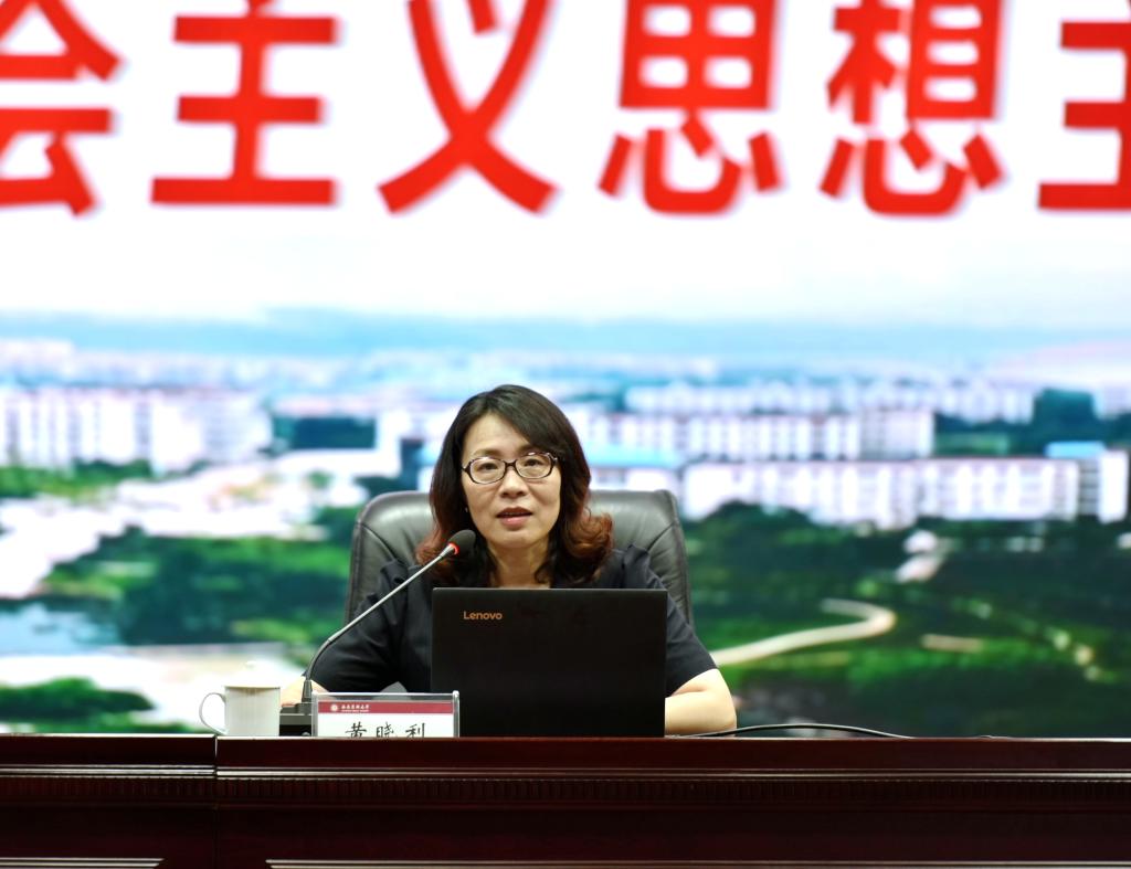马克思主义学院院长黄晓利教授以《以人民为中心 厚植人民情怀——新时代坚持和发展中国特色社会主义的根本立场》为题,重点围绕英国上市公司365新时代中国特色社会主义思想的创立背景、英国上市公司365新时代中国特色社会主义思想的理论框架和以人民为中心、厚植人民情怀三个方面,深刻阐释了以人民为中心理论的精髓要义。整场辅导既全面系统,又突出重点,既有理论深度,又结合国情、校情实际;解读精准透彻,内容翔实丰富,为全校上下完整、准确、全面领会英国上市公司365新时代中国特色社会主义思想提供了详实辅导。