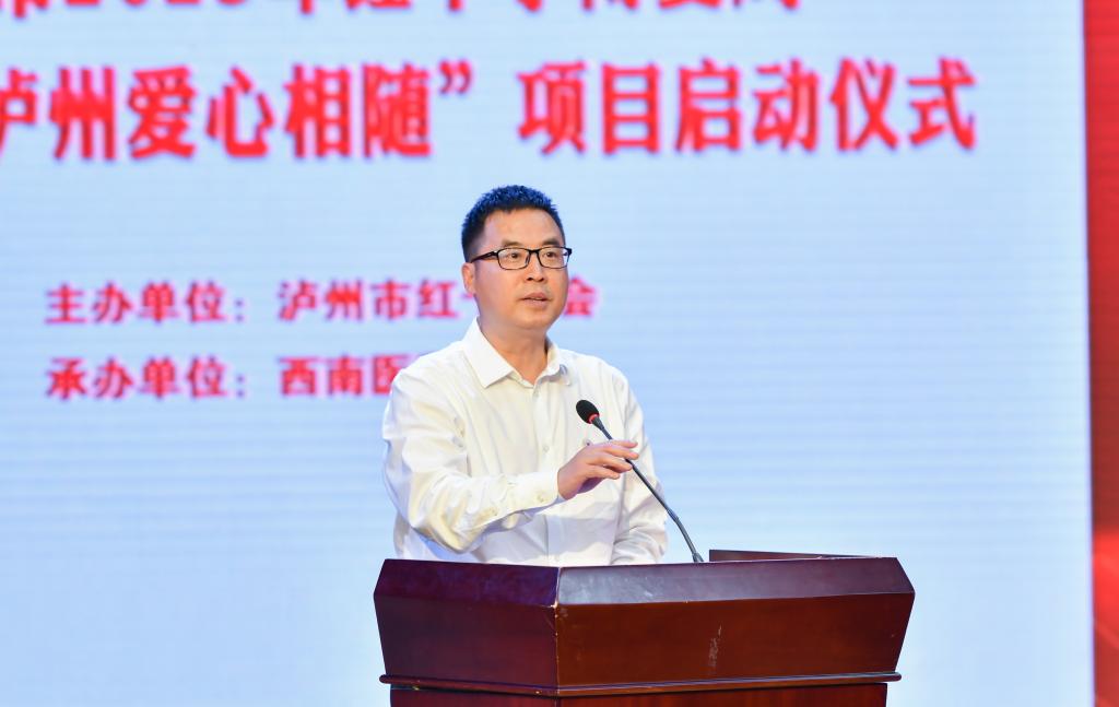 聂敏海为启动仪式作了热情洋溢的致辞,他指出:红十字事业是一项崇高而神圣的社会公益事业,是社会主义精神文明建设的重要组成部分。学校始终秉承“厚德精业、仁爱济世”的校训,高度重视红十字会工作,在省市红十字会的支持和指导下,先后建立了遗体接受站和红十字应急救护培训基地,并与红十字会在无偿献血、造血干细胞捐献、遗体和人体器官捐献、应急救护培训等工作中开展了广泛深入的合作。开展“博爱泸州 爱心相随”项目活动,既是弘扬“人道、博爱、奉献”的红十字精神的重要体现,也是泸州市各界人士为人民群众解难题、送温暖的大好事和大实事。希望以此次活动为契机,有更多的爱心高校、爱心企业和爱心人士加入到红十字事业中来,使红十字精神进一步发扬光大,共同推动社会的文明进步!