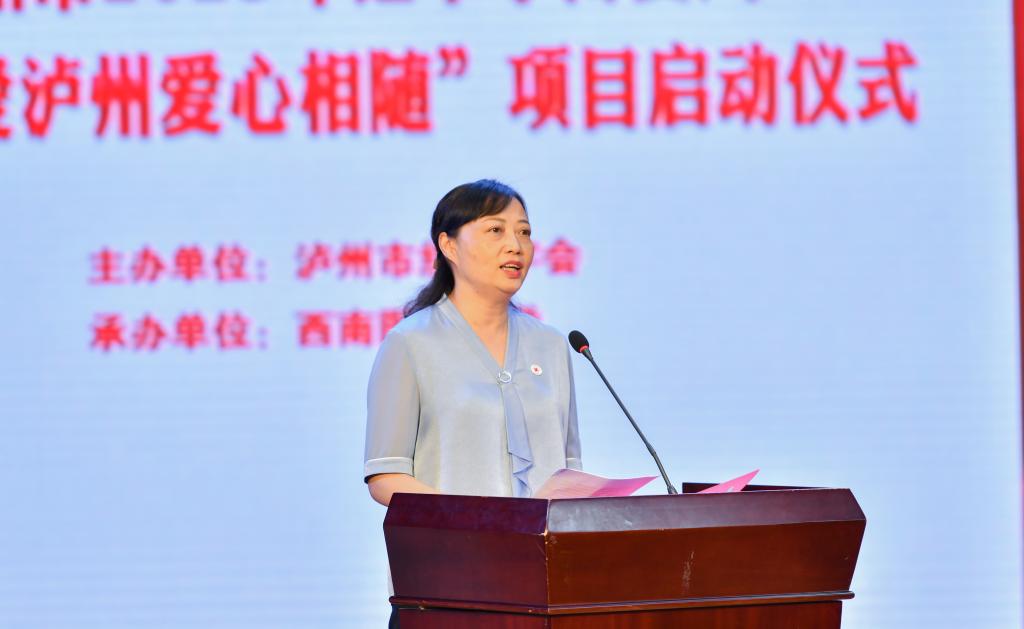 泸州市红十字会党组书记、常务副会长赵志介绍了“博爱泸州 爱心相随”项目情况,她指出项目筹集资金将全部用于全市的助学、助老、助残、助困,相比去年,募捐资金的使用方式更活、惠及群众更广泛。“5·8人道公益日”活动是只针对全国红十字系统开展的网络筹款,在腾讯公益慈善基金会的支持下,有1400万的项目配捐资金。她呼吁全市爱心单位、爱心企业、爱心人士踊跃参与并行动起来,伸出援手,献出爱心,一块做好事,为我市人道主义事业贡献一份力量。