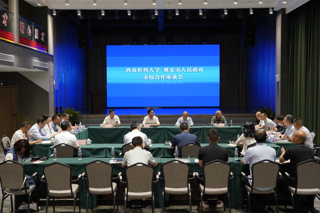 授课及调研结束后,张春祥一行与雅安市卫生健康委员会、雅安职业技术学院、市人民医院、市中医医院、市疾控中心有关负责同志共同就校地合作事宜开展座谈会。会上,雅安市卫健委党组书记、主任王华同志首先介绍了市校合作推进情况及下步合作建议,希望通过本次座谈双方更加深入了解,务实推进合作。雅安市市级医疗卫生单位也分别提出了合作需求,学校各相关部门立足学校事业发展就更深一步的务实合作作了发言。