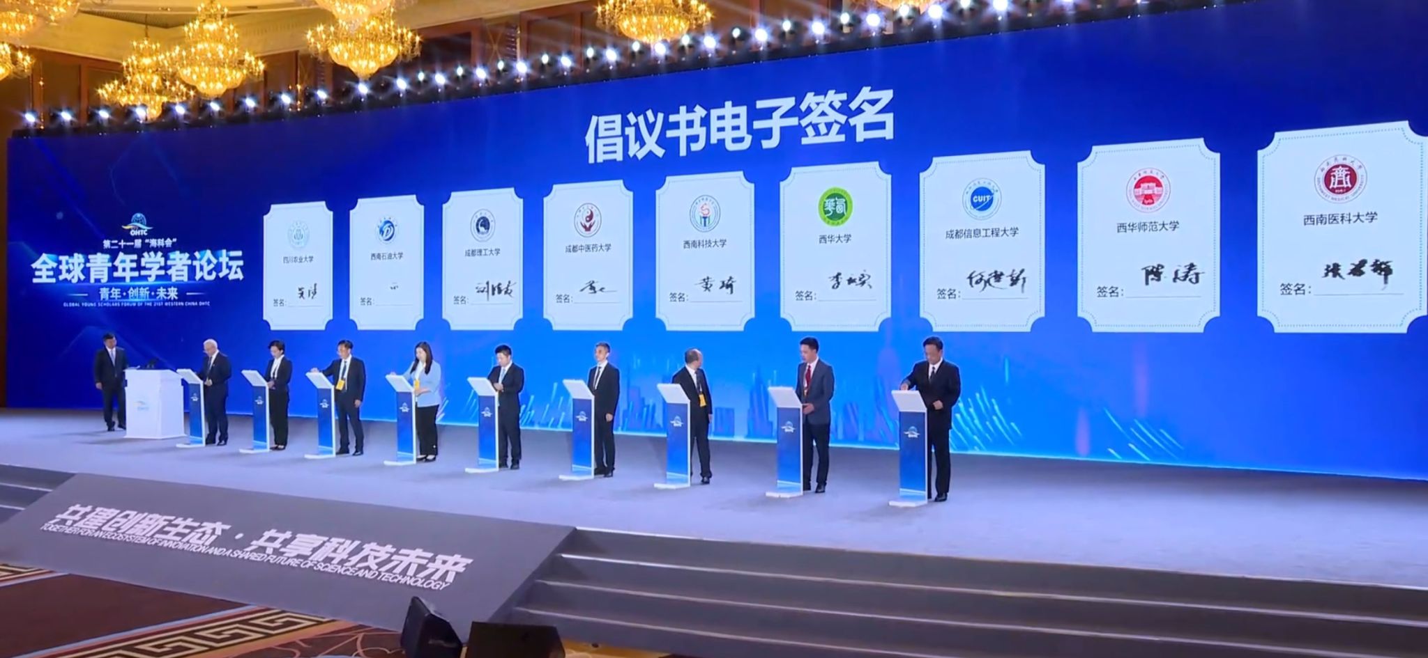 9月11日下午,第三届“全球青年学者论坛”在成都举办。本届论坛以“青年•创新•未来”为主题,采取“线上+线下”相结合的方式开展,280余名海内外青年学者代表线下参与论坛,近30万人次线上观看。四川省副省长、省委人才工作领导小组副组长郑备出席主场活动并致辞。我校党委副书记、校长张春祥出席主场活动并参加了倡议活动。