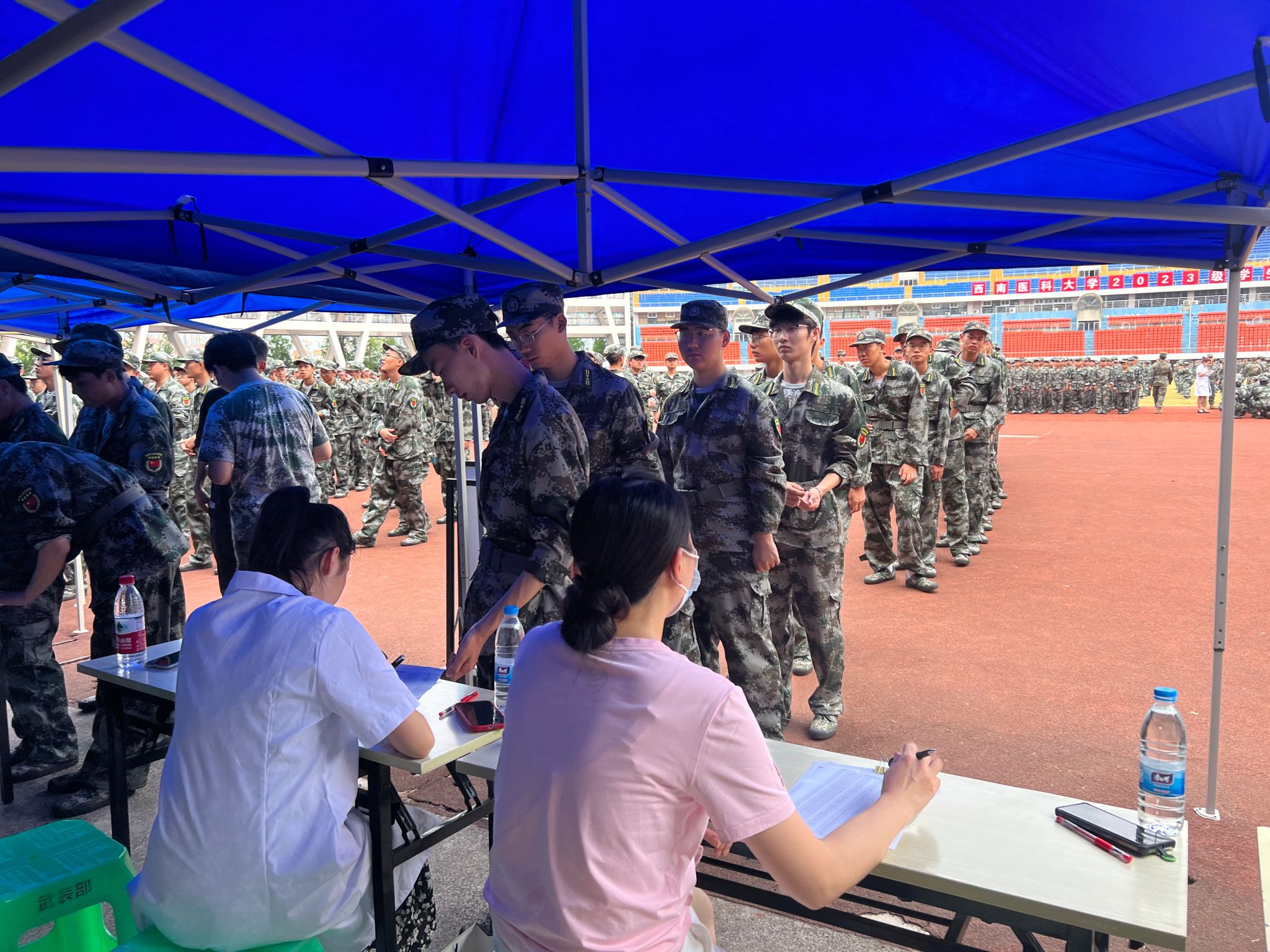 为贯彻落实学校疾病预防工作要求,及时了解和掌握学生身体状况,按照《普通高等学校招生体检工作指导意见》相关要求,在2023级新生军训期间,我校通过“三化措施”完成4895名新生(含专升本)入学健康体检工作。