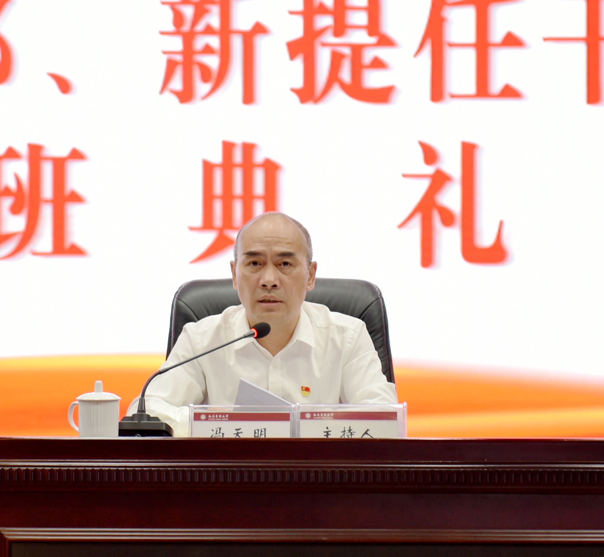 冯天明在主持时要求全体参训学员要珍惜培训机会,加强交流互动,遵守培训纪律,充分发挥示范作用,真正把学到的知识转化为狠抓落实、推动工作的强大动力,以高质量党建引领学校事业高质量发展。