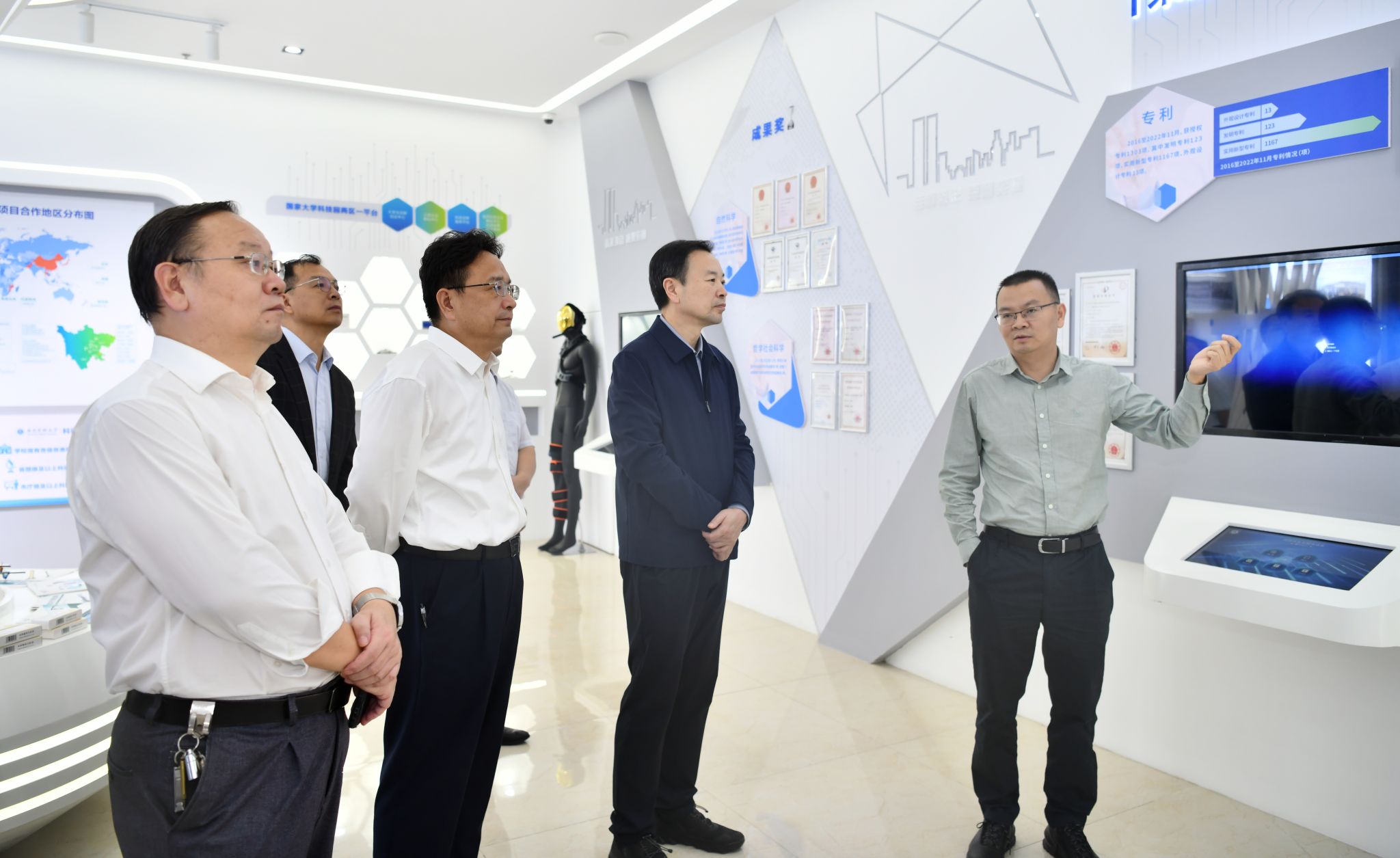 25日下午3点,任文杰一行参观了学校校史馆,了解我校历史发展进程、办学成果、社会服务贡献、学科建设工作等。结束校史馆参观后,任文杰一行又前往学校科技大楼调研我校科研平台建设情况。学校党委副书记、校长张春祥,发展规划处处长赵领,研究生院院长范贤明全程陪同参观。