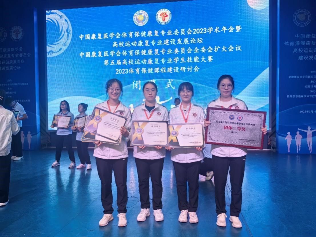 9月22日-24日,第五届全国高校运动康复专业技能大赛在成都体育学院举行,本次赛事由中国康复医学会体育保健康复专业委员会主办、成都体育学院承办、教育部普通高校体育教学指导委员会技术组协办。来自上海体育大学、武汉体育学院、成都中医药大学等60所综合性大学、医学院校和体育院校共同参加了此次比赛。体育学院运动康复系教师沙滟、罗强、喻露西,带领运动康复专业2020级倪虹洁、刘杨、杜璐秀、杨常智四名学生参加了大赛,最终斩获团体二等奖,倪虹洁获个人全能一等奖、刘杨获个人全能二等奖、杜璐秀获个人全能三等奖。