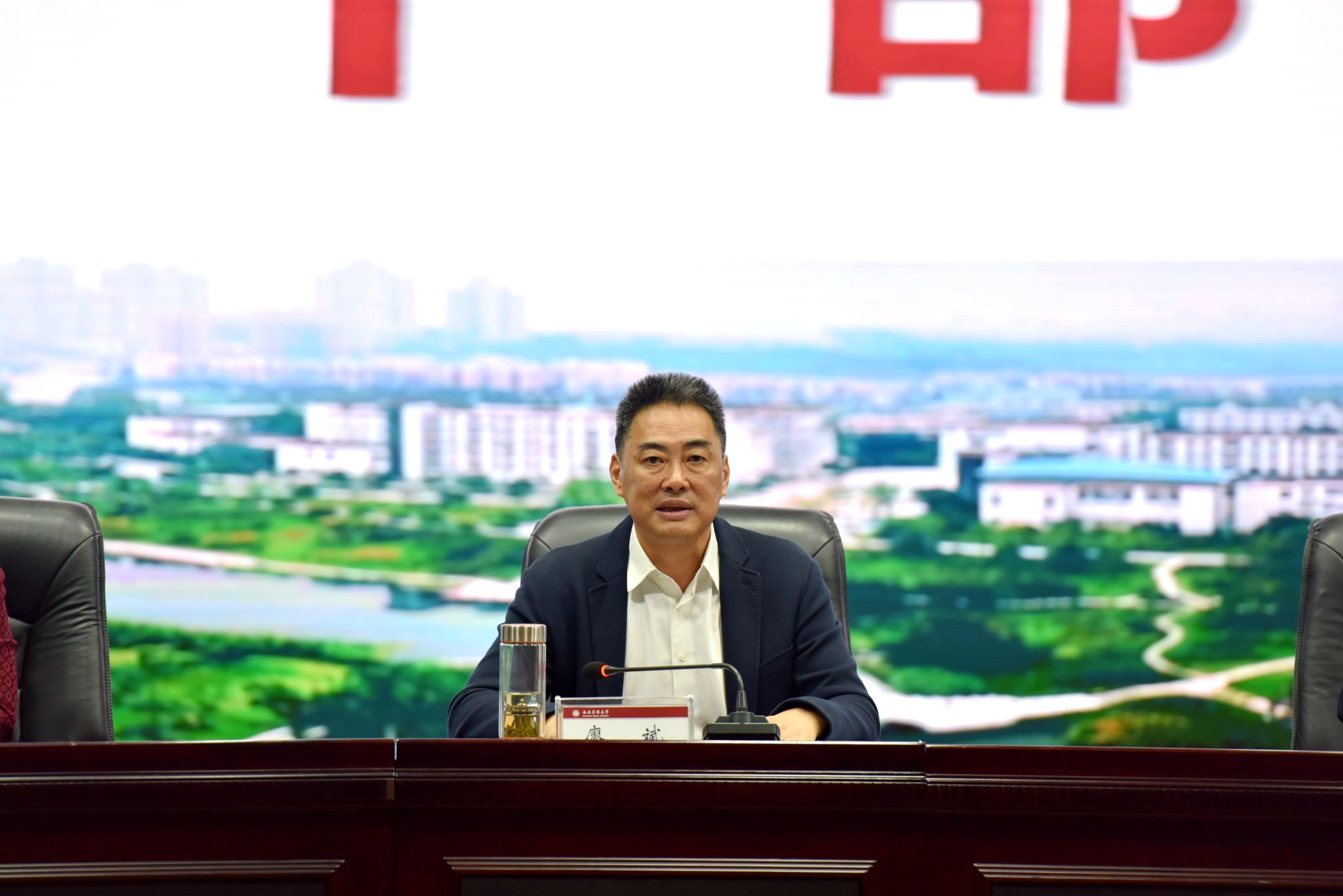 廖斌代表学校党委对省委、省政府为我校选任补充江涌、赵领两位班子成员表示感谢!并向全校干部职工提出三点希望和要求。一是坚决拥护省委、省政府决定,全校上下统一思想认识,切实把思想和行动统一到省委、省政府的决定上来,全力支持江涌、赵领同志开展工作,推动发展。二是希望江涌、赵领同志忠诚担当,履职尽责。按照班子分工,抓好分管领域党的建设、全面从严治党、“一岗双责”工作,以立德树人为根本任务,抓好分管部门行政管理工作,推动治理体系和治理能力现代化,用新的业绩回报省委、省政府的信任和干部职工的期望。三是统筹协调,系统推进学校内涵式高质量发展。希望学校党政领导班子带头示范,团结带领全校干部职工全力以赴加强党的建设,深入实施学校“138”发展战略;全力以赴推动事业发展,抓紧抓好“十四五”规划落实;全力以赴落实今年党政工作要点,盘点尚未完成的目标任务,做好年底的加油冲刺;全力以赴确保学校安全稳定,平稳有序推进各项工作落地落细。
