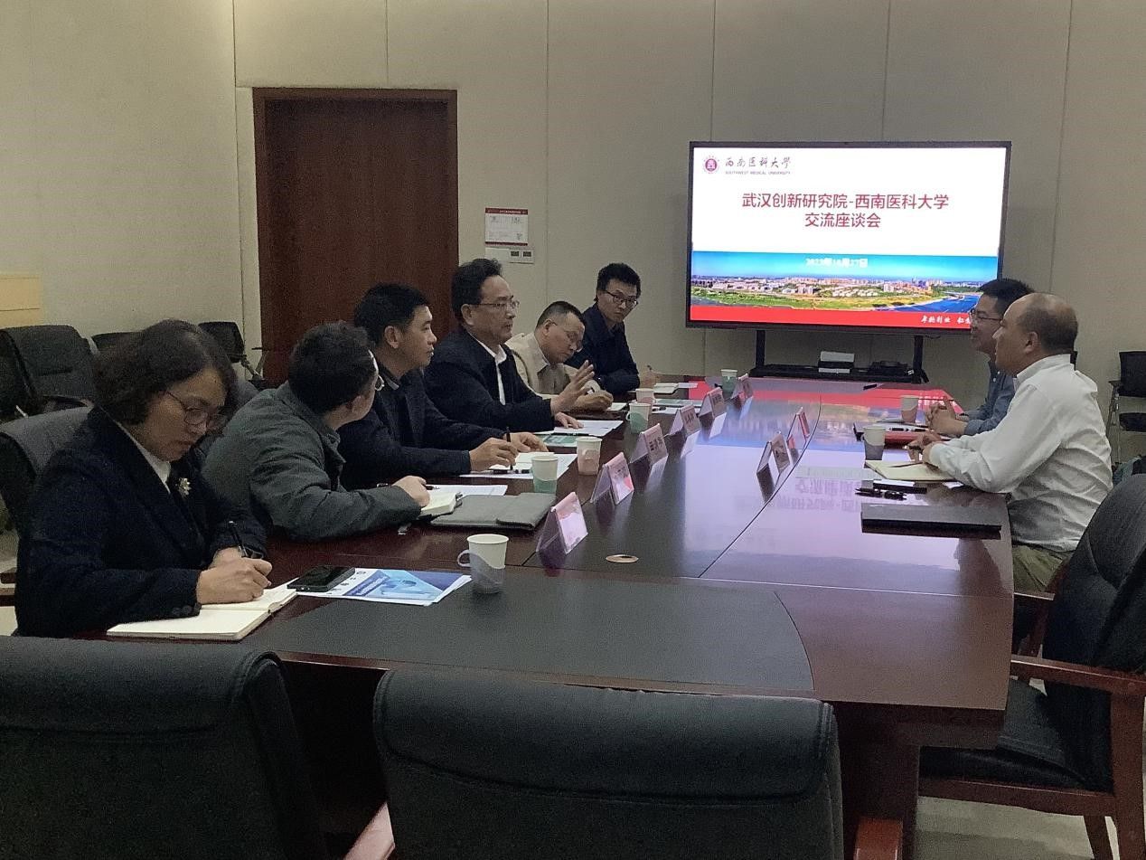 田清华介绍了我校科技成果转移转化情况,肖五淀介绍了教育部代谢性心血管疾病医药基础研究创新中心情况。吴知才介绍了武汉创新研究院生命科学工具产业研究所以及在产学研转化方面的规划以及进展,娄阳介绍了武汉爱博泰克生物科技公司以及其主导的产学研计划。双方与会人员进行了热烈的交流。