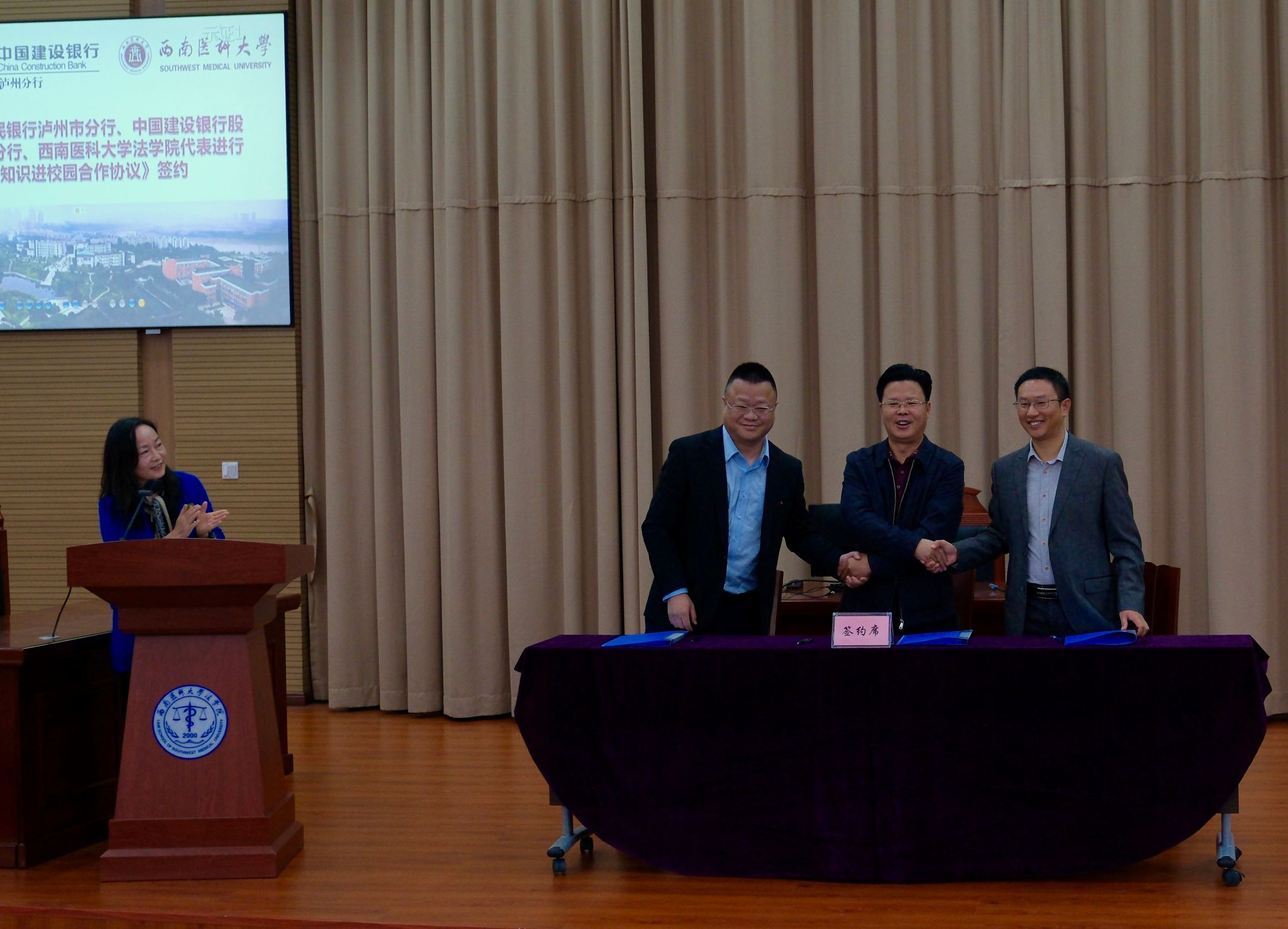 典礼上,中国人民银行泸州分行、中国建行泸州分行、英国上市公司365法学院三方签约《反洗钱知识进校园合作协议》。