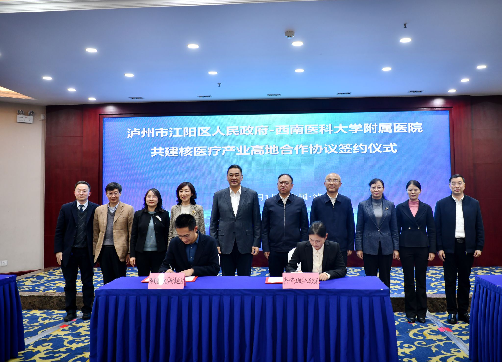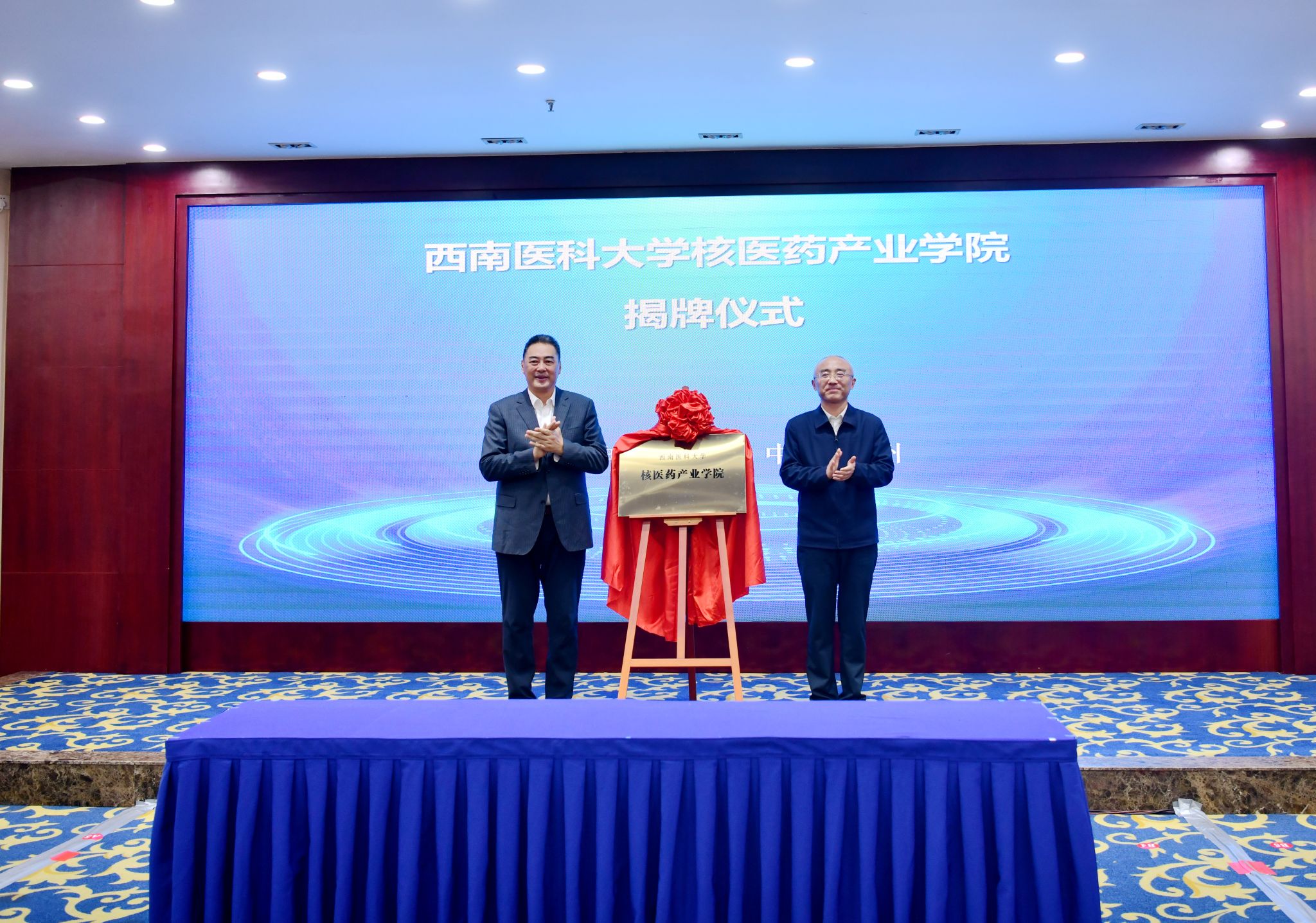 出席仪式的还有,学校党委常委、副校长,核医药产业学院院长何涛;学校党委常委、副校长,临床医学院附属医院院长江涌;泸州市江阳区区领导路敦琴、杨勰。