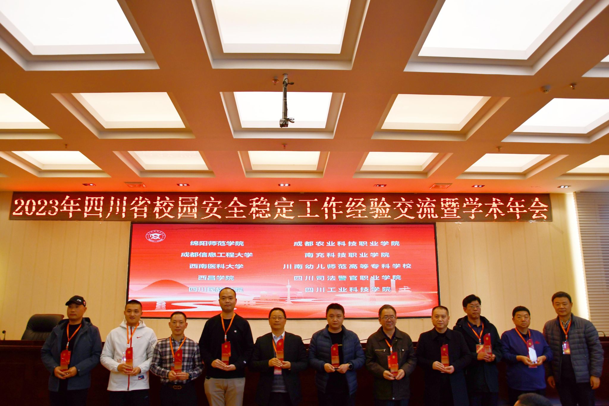 2023年四川省校园安全稳定工作经验交流暨学术年会于12月6日-12月8日在西昌学院举行。本次会议对2023年度四川省高校“平安校园”建设先进单位、先进个人进行了表彰,我校获评2023年度四川省高等院校安全保卫工作“平安校园”建设先进单位。保卫处董颋婷、柳建军获评保卫干部先进个人,林叶彬、罗安勇、涂天权获评优秀安保先进个人,李豪、吴红、殷珺洁获评学生先进个人。
