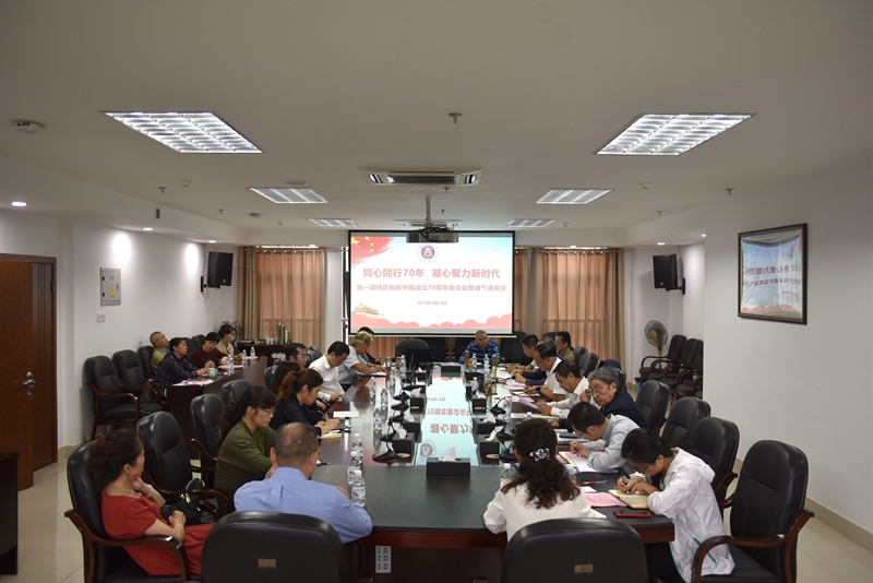 9月19日下午,学校统一战线庆祝新中国成立70周年座谈会暨通气通报会在城北校区德诚楼621会议室召开。校党委副书记李尚志,党委常委、副校长刘广益,党委常委、党委统战部部长柏珂,党委办公室、校长办公室、党委组织部、人事处负责人,省市人大代表、政协委员,民主党派基层组织代表,留联会、知联会、侨联代表等40余人欢聚一堂,喜迎新中国70华诞。会议由李尚志主持。