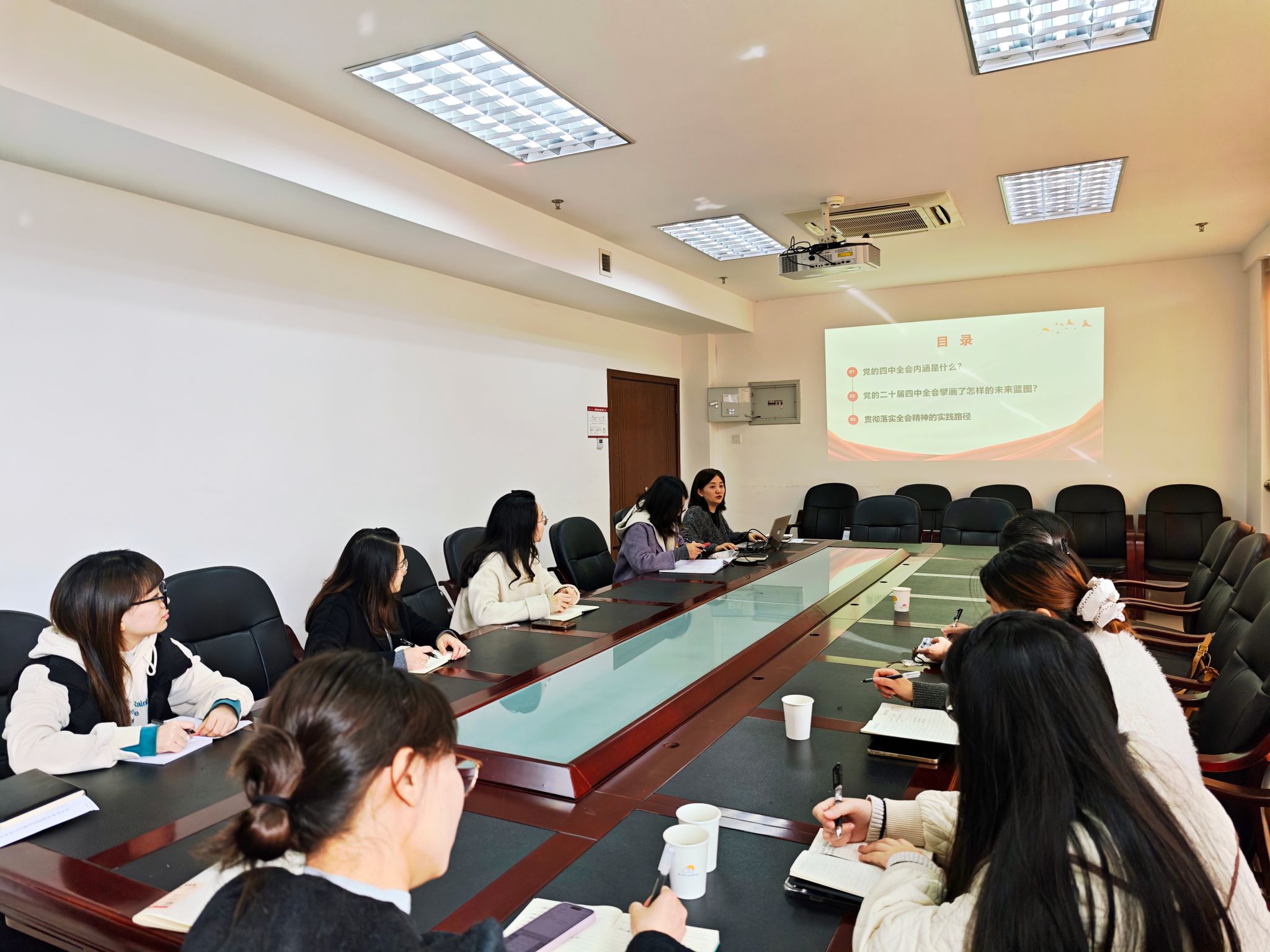 11月20日下午,机关党委英国365官方网站以“学习党的二十届四中全会精神”为核心主题,开展系列主题党日活动,通过专题党课、业务培训、观影学习三维度融合,推动理论学习走深走实、实践赋能精准高效。